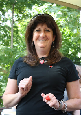 We all know how I love to tie things together too -- I wore lots of heart jewelry, including the flashing ring on my finger. I wish the photo showed my pretty skirt - I don't want you to think that I wore all black to the wedding!The first time John and Karen met was in the kitchen of the Hostel. I had booked Jason Wilber for a concert and Karen came from Chicago to visit a friend who took her to the show. Jason played at the reception - I love how they tied at all together.